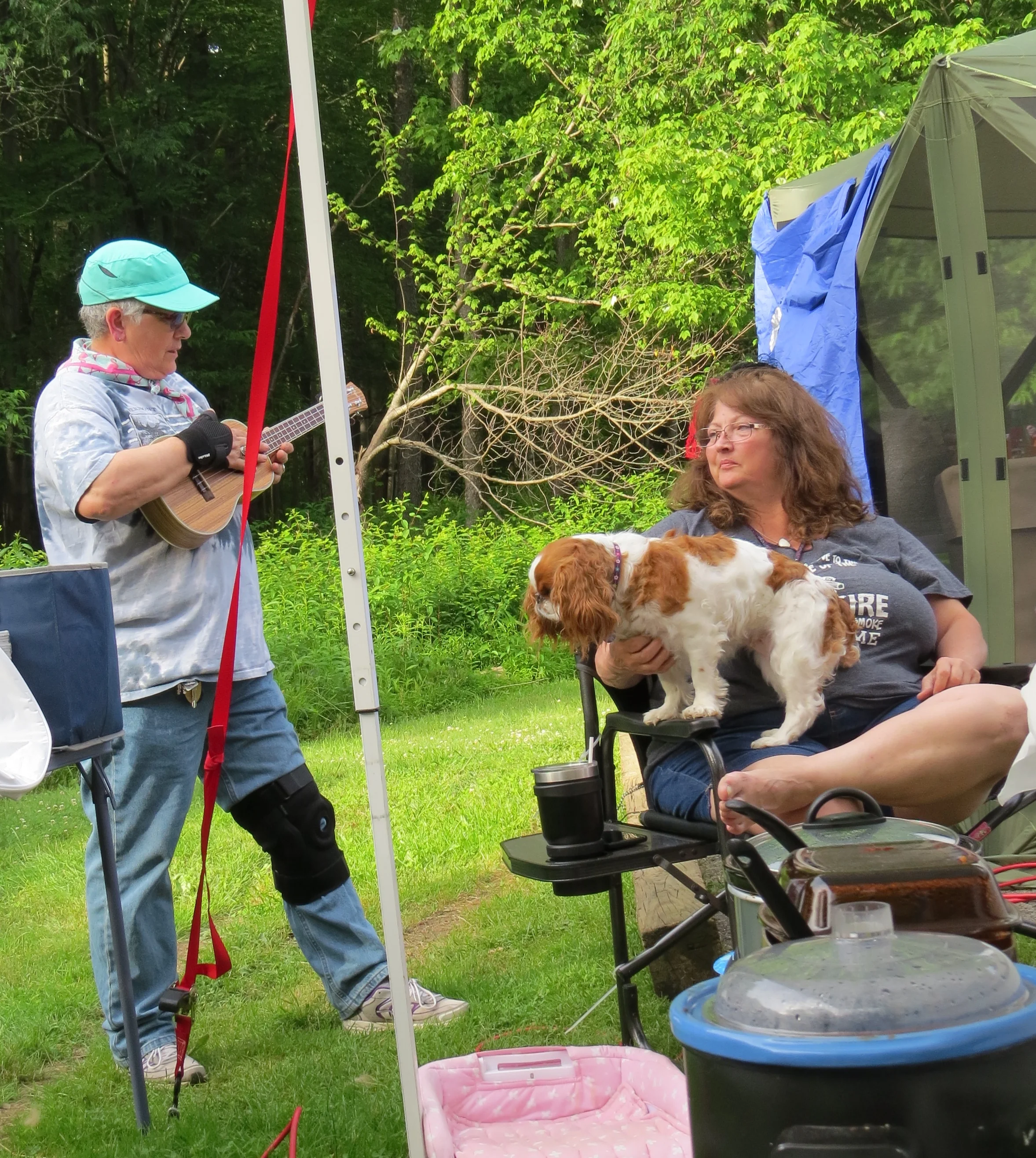 My first evening at Blackwater Falls, Camay and her friends, Karen Reinhardt, Betty Bennett Ference, Tammy Witmer, and Stacy Bittner hosted us for "appetizers" at her trailer, and that turned into our first unofficial potluck of the trip. They made these amazing pizzas in The Big Green Egg smoker that she toted along. Totally Yummers!
